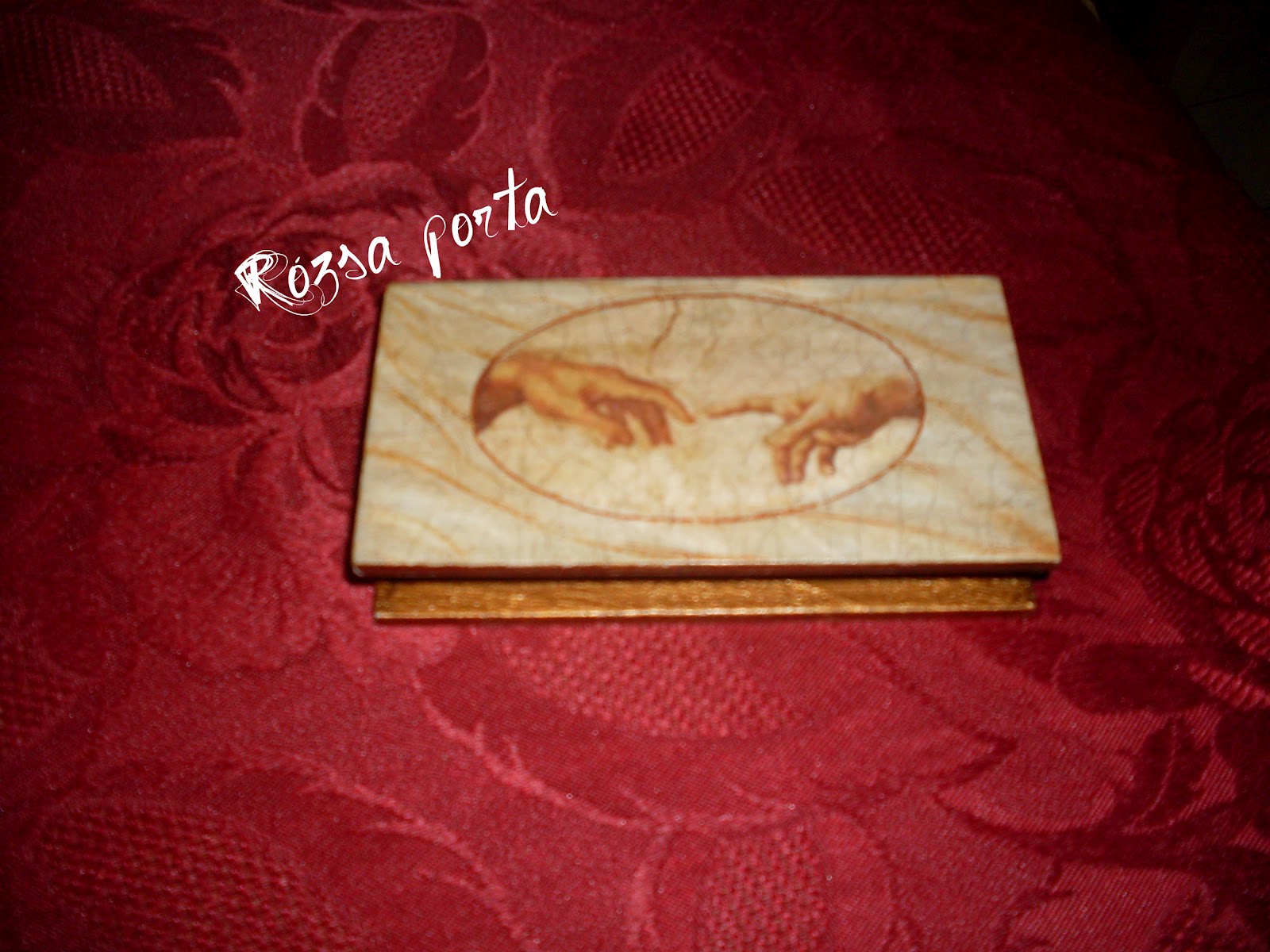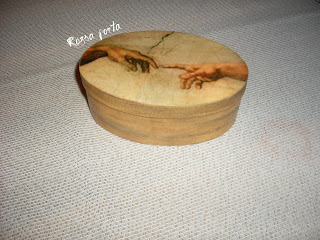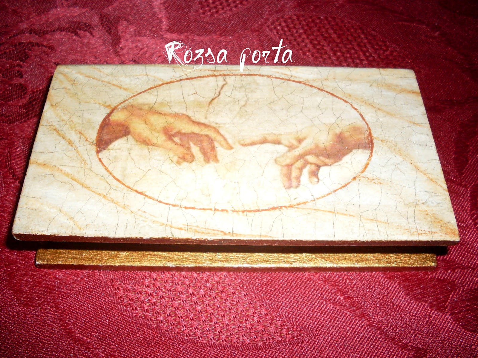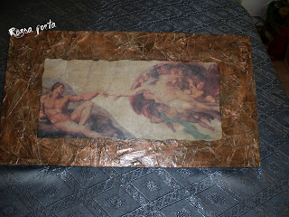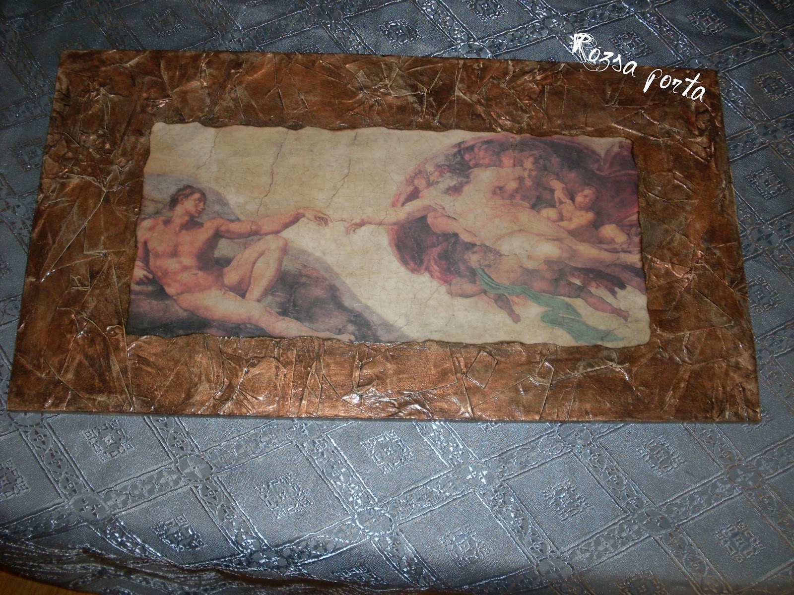 Nem tudtam ellenállni annak, hogy Ádám teremtését teljes egészében is felhasználjam. Itt egy vékony - ún. soft - decoupage-papírt haszháltam.