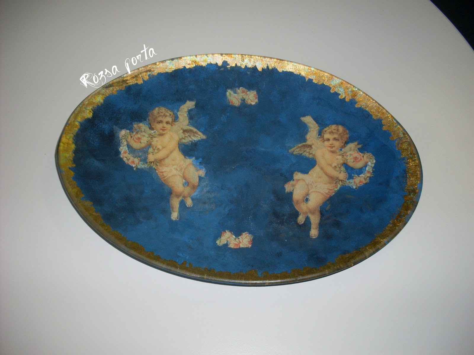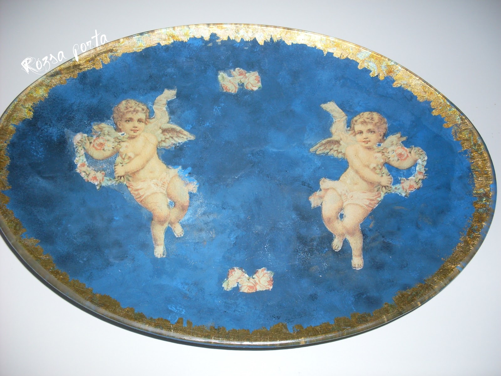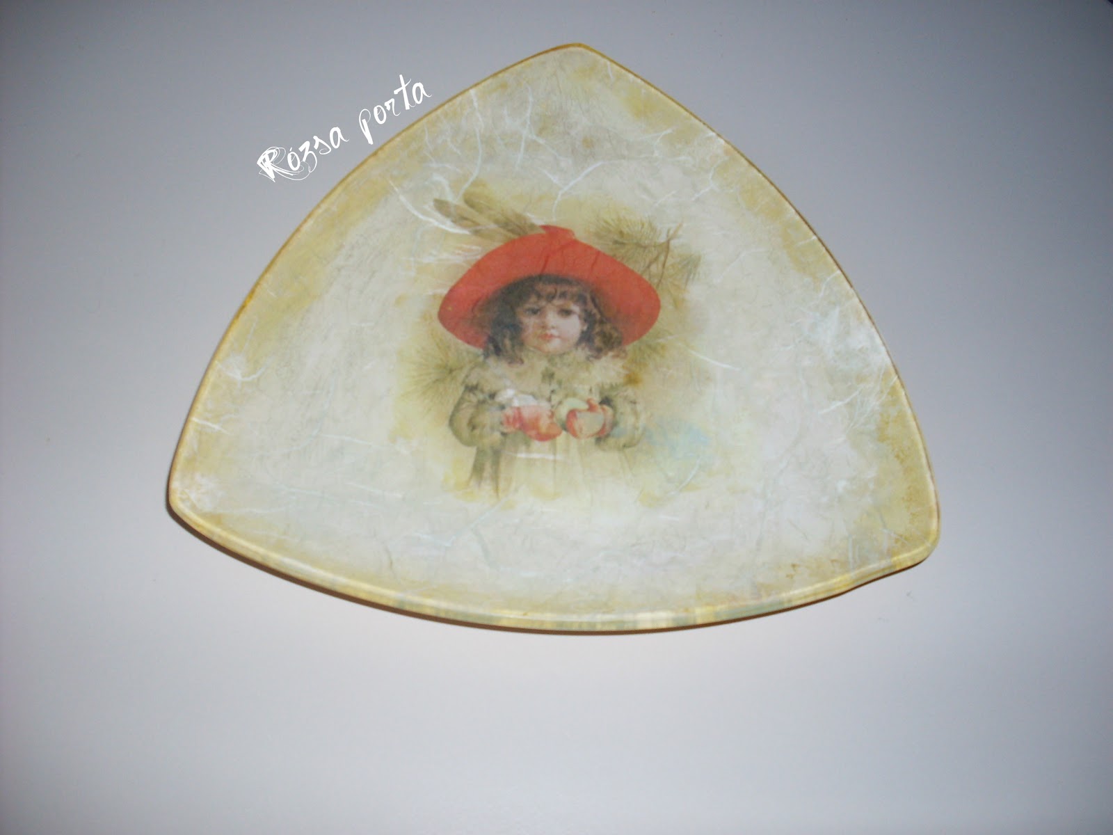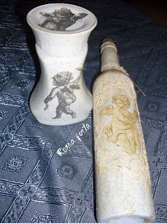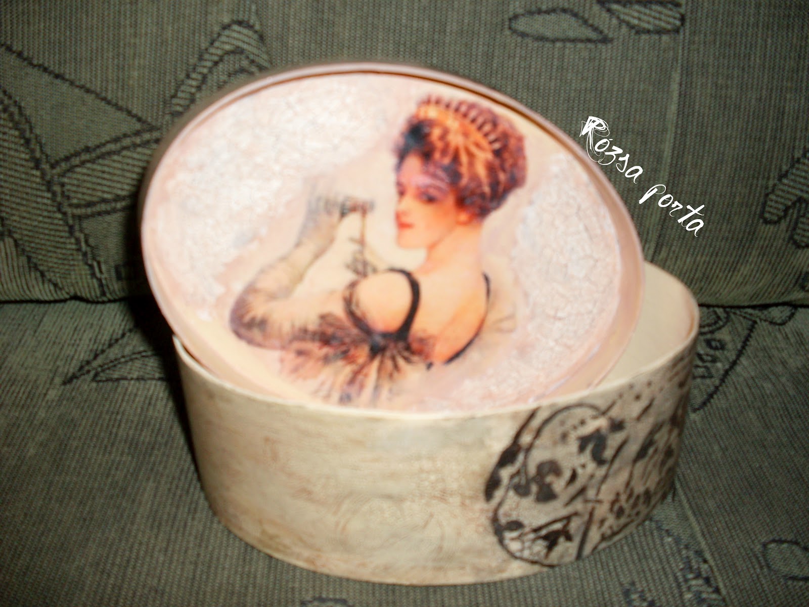 Aztán jöttek olyan téli esték, amikor az interneten szörfözve becsöppentem egy-egy olyan világba, ami nekem olyan volt, mint a gyerekeknek egy szép mese. Olyan művészi alkotásokba botlottam, hogy a szám is tátva maradt, s azt mondogattam magamnak: hát ilyet emberi kéz nem is alkothat! Akkor még fogalmam nem volt arról, hogy egy-egy tárgy amit látok mitől lett olyan amilyen, hogy némelyik mitől olyan, mint amit akkor kapott a tulajdonosa a nagymamától örökség gyanánt, pedig most készült és nem sok-sok évtizede...és még folytathatnám mi mindenre csodálkoztam rá. Na ott kezdődött a decoupage iránti szerelem nálam, s ezek a rácsodálkozni való gyönyörűségek azok, amiket én decoupage-nak hívok és tartok. De ez a fajta decoupage nem valósítható meg azzal, amit az a jóbarát felvázolt, s amit fentebb már idéztem, hogy "bemész egy hobbiboltba ....." S ez a fajta decoupage - az igazi decoupage - az, amit szeretni, gyakorolni és tanulni kell, hogy egyre közelebb kerüljek ahhoz, hogy olyasmit csináljak, amire így rá lehet csodálkozni.