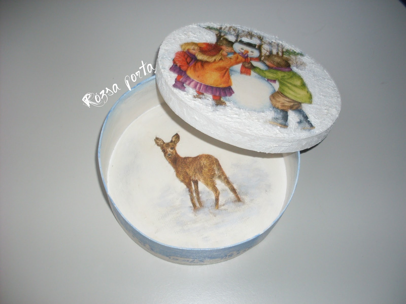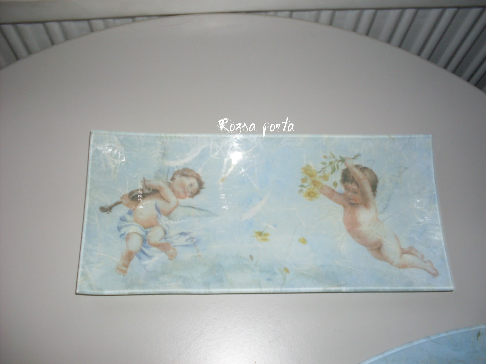 Hát igen, ez is decoupage. Valamikor évekkel ezelőtt én is így kezdtem (körbefestés nélkül, ez a fentiekben még mindig sokkol, ha visszaidézem). Az első decoupage ragasztót a keresztlányomtól kaptam kölcsön. Fogtam egy agyagkancsót, s szalvétából kivágott karácsonyi mintát ragasztottam rá.Ühüm, jó lett, a szalvéta meg még ráncos sem, de annyira nem fogott meg ez a dolog, nem éreztem késztetést arra, hogy innentől kezdve aztán minden utamba kerülő tárgyat a lakásban megdekupázsoljak. Olyannyira nem, hogy hosszú időre, évekre el is temettem magamban ezt az egészet.