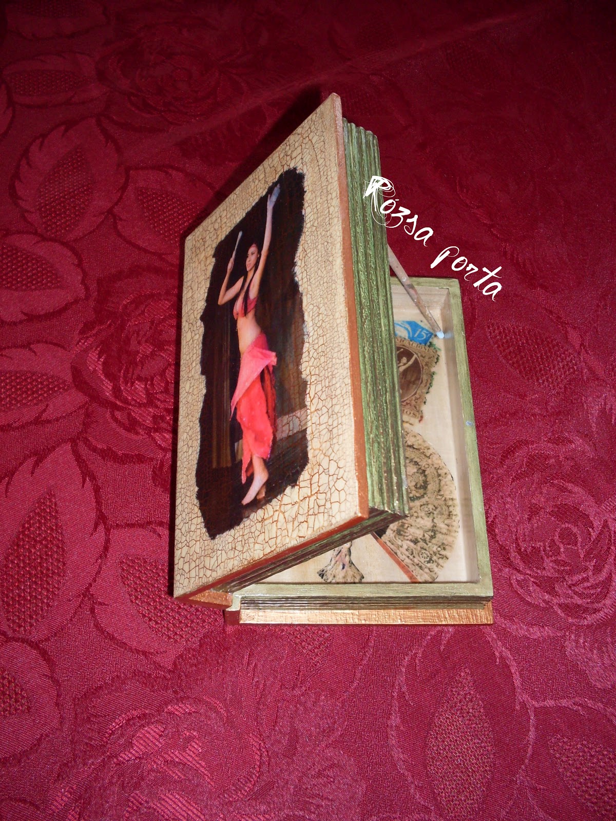 Ugyanez a lány van a könyv alakú dobozon, a szalagavatón készült felvétellel. Itt nem takarom ki az arcát, ez nem annyira közeli kép, így maradhat. A könyv elején az eredeti kép, hátul ugyanaz kicsit megmahinálva, s belsejébe egy képszerkesztővel bélyegekbe szerkesztgettem szintén Őt.