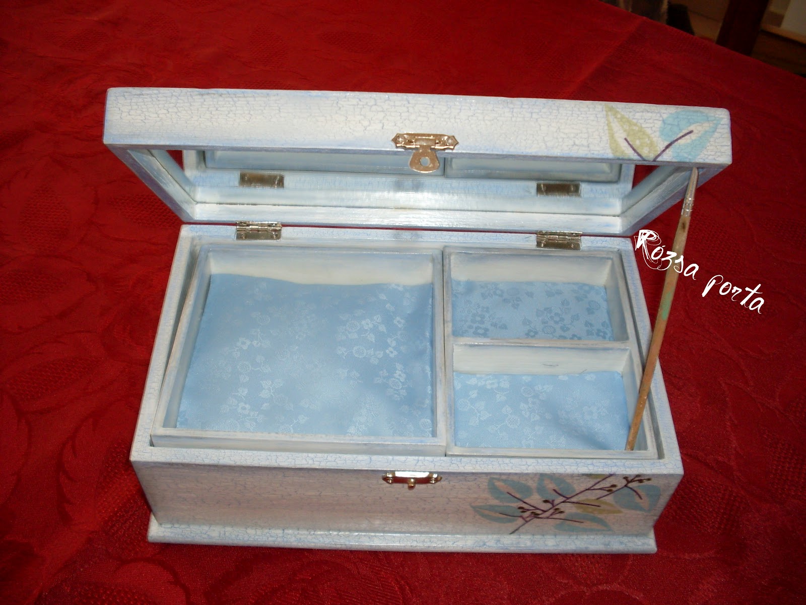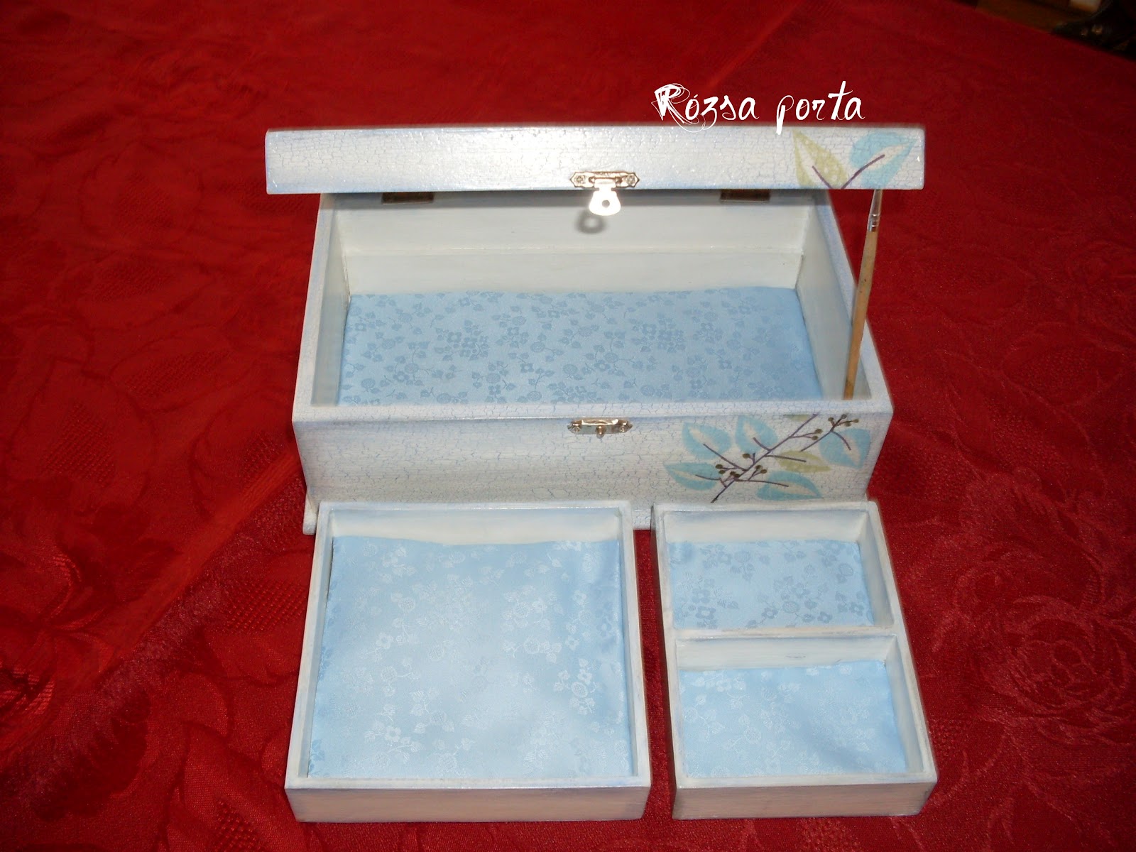 Ez pedig az ékszeres dobozom (mármint egy olyan tükrös dobozra dolgoztam), fiatalosra hangolva.
