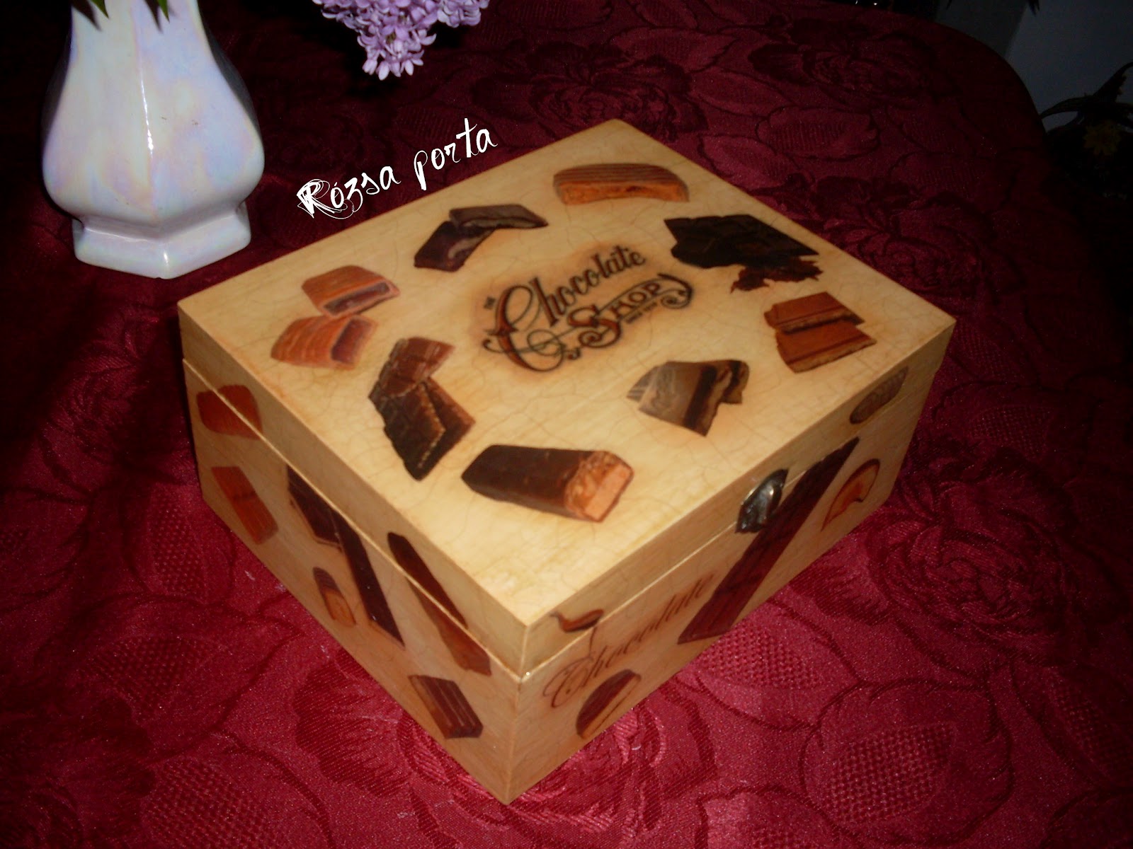 (Azért még mindig azt gondolom, sokkal jobb, ha nem kérnek egy "pont olyant". Csak így marad az egyedi tényleg egyedi. A doboz formája ugyan más, de mégis nagyon hasonlóak, s aki kérte, a doboz belsejében lévő "csokifolyóhoz" is ragaszkodott.)