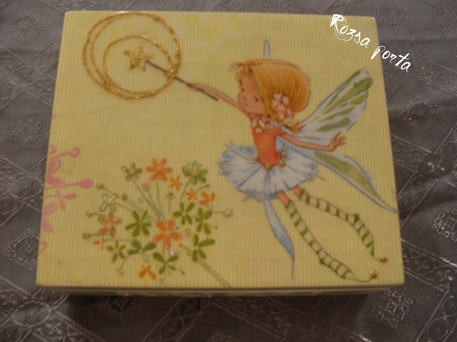 (A képek nem sikerültek jól, a varázspálca, a topán csúcsán és a virágokon lévő "Csilivili" sajnos nem látszik igazán.)