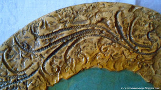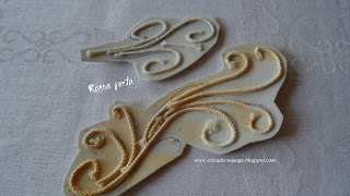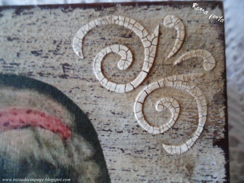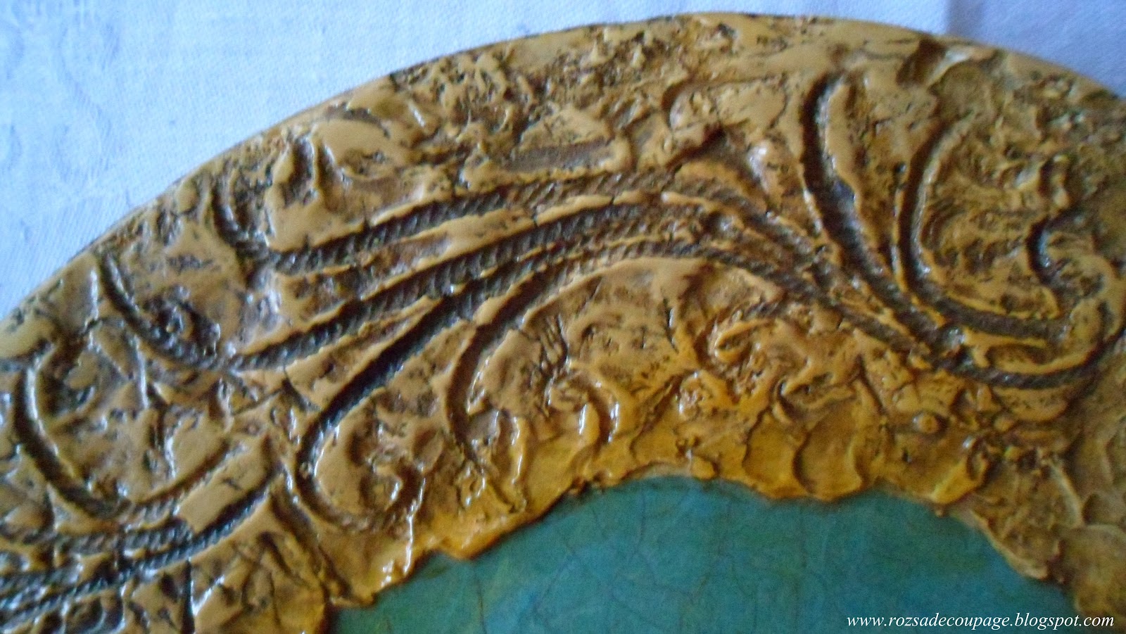 Nos, kedves Éva! Remélem visszatérsz a blogra, s itt olvasod a válaszomat. Gyorsan "lőttem" egy képet az alkatrészről. Ez nem más, mint gumilapra ragasztott dekor-madzag. Nemes egyszerűséggel fogtam egy darab gumilapot (A4 méretben igazán olcsón beszerezhető), jól látszik a képen, hogy segítettem magam-magamnak, s előre tollal felrajzoltam a kacskaringókat - akinek 0 gyakorlata van, akár indigóval csodákat is rajzolhat:) - , kb. kimértem a madzagok hosszúságát és felragasztottam a tintás rajzra (én a Pentart általános ragasztóját használtam). A könnyebb használat céljából nagyjából körbevágtam a gumilapot. A madonnás képnél csak a nagyobbat használtam. Néhány "bevetést" garantáltan túlél, a nagy már túl van legalább 5-ön, s most esett le róla egy kis "kanyar" ennél az utolsó használatnál, az elmosás során (látszik is a fotón a hiány). Szóval, ha ennyit kibír néhány forintért, hát van némi megtakarítás a szilikonos nyomdával szemben, ami több ezer forint/darab, s igen nagyon kell rá vigyázni. Nekem is van, én is vigyázok rá:) Persze használom, de nem mindenre, s ennyire mély mintát nem is lehet vele az alapba nyomni! Talán ha legközelebb csinálok ilyet az elvágott madzagvégeket kicsit megolvasztom (gyertyaláng, viaszba mártás, nos nem is tudom, attól függ, hogy műszálas, vagy természetes anyagól van a madzagunk), hogy ne bomoljanak ki idő előtt. Talán még egy jó tanács, ha természetes anyagból van a madzagunk, érdemes előtte forró vízbe mártani, megszárítani, s úgy felhasználni, éreztem használat közben, hogy kicsit zsugorodott, s ez így elkerülhető.