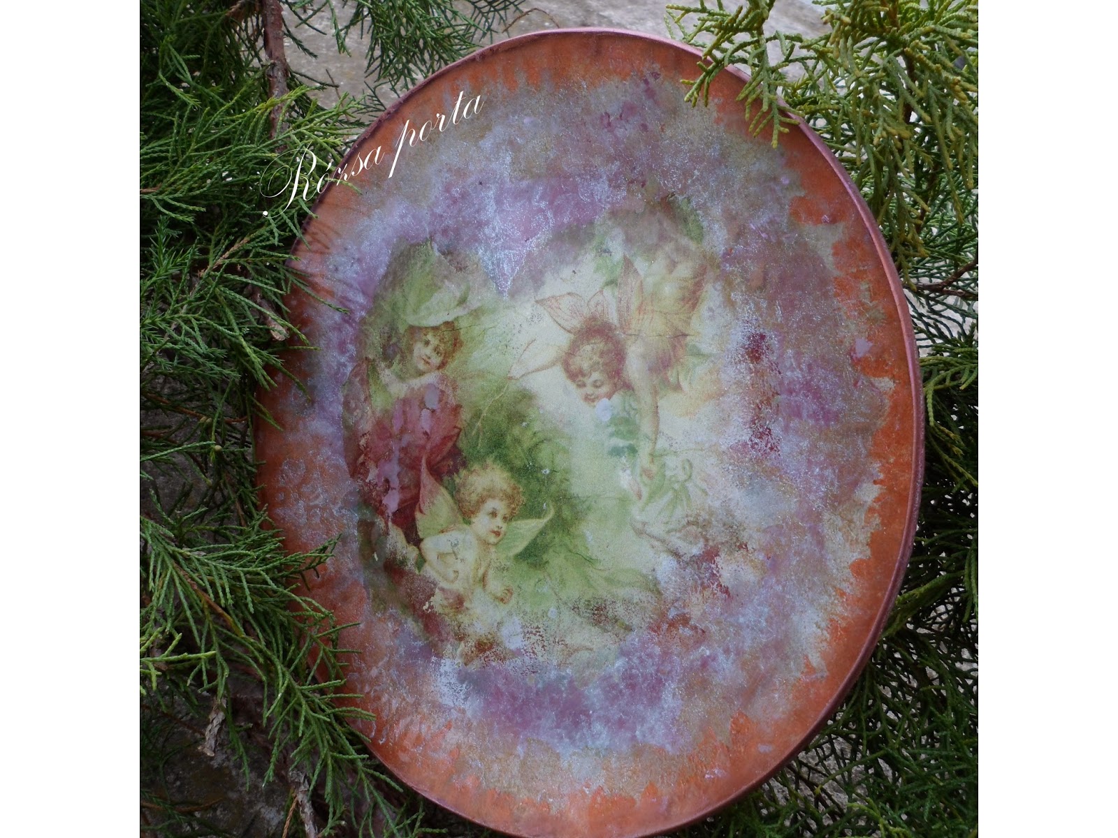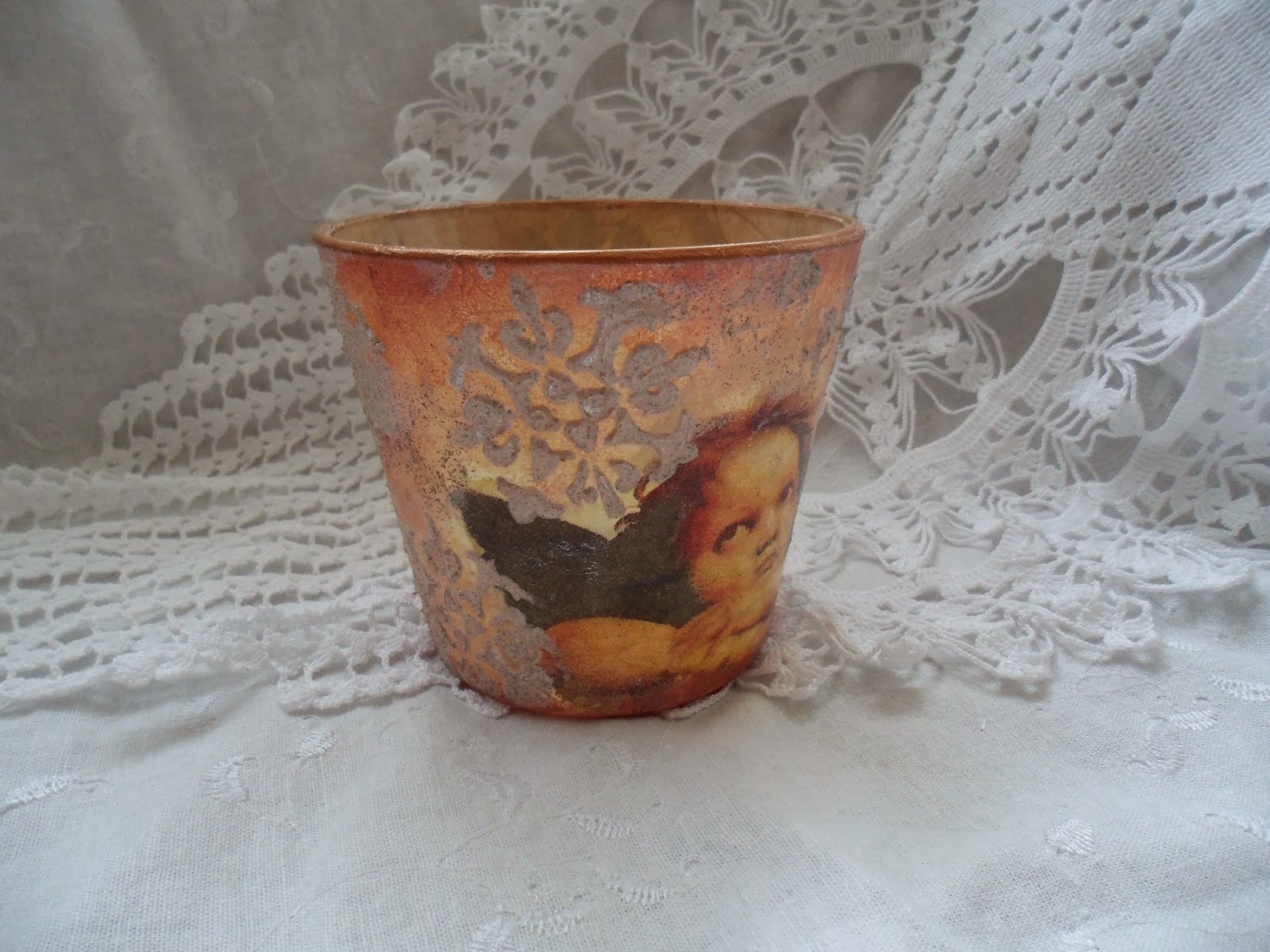 Szóval karácsony. Egy kis újrahasznosítás is van benne, mert a gyertyaalátétek amolyan "rettenet" bolhapiacos vételek, fémszerű tálkák, némelyiken német felirat is volt, de a formájuk nagyon klassz, hazahoztam őket, s tudtam mi lesz a funkciójuk: gyertyákhoz alátét. Bevált, nekem tetszik. Persze így, "átkenve-áthangolva". :-)