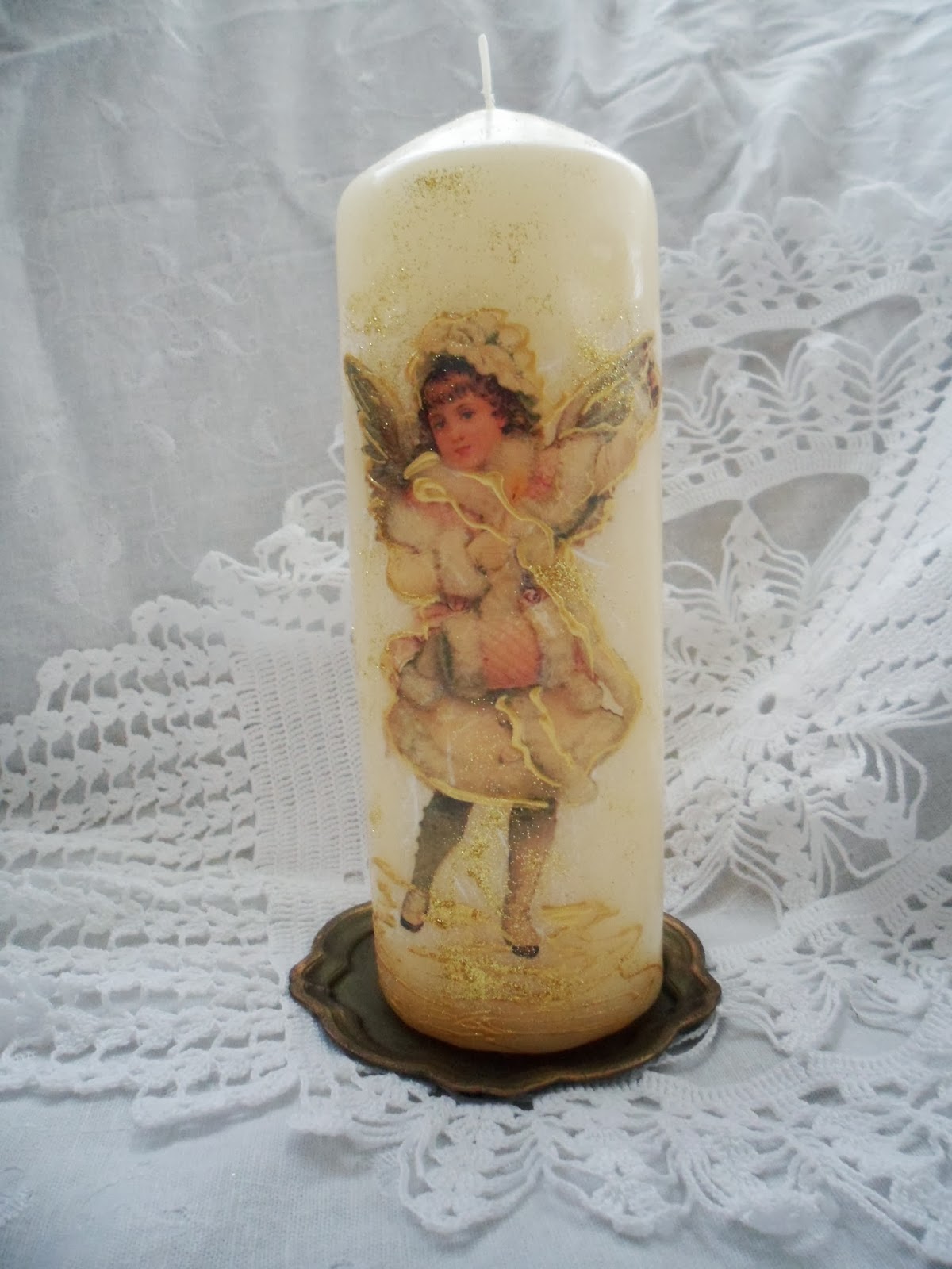 A múltkor mutatott fém tálkák mennyisége is sugallta talán (pedig nem is raktam egy kupacba mindet), hogy nem csak két gyertya készült. A két angyallánynak van egy fivérük is, most azt szeretném megmutatni.