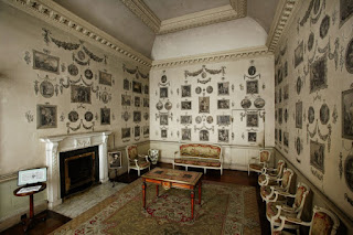 Ezeknek a nyomatoknak is van történelmük. A 18. századi művészeti technikát print room-nak hívják, érdemes kicsit utánaolvasni, leegyszerűsített lényege, hogy ilyen nyomatokkal díszítettek egész szobákat, szalonokat, vagy csak egy-egy falat. Eredete Nagy-Britanniához fűződik. Érintetlenül kevés maradt meg a mai kor embere számára, de azért akad néhány, talán a legismertebb és legnagyobb az Írországban lévő Castletown House. Erről mutatóba hoztam egy képet. A fotó