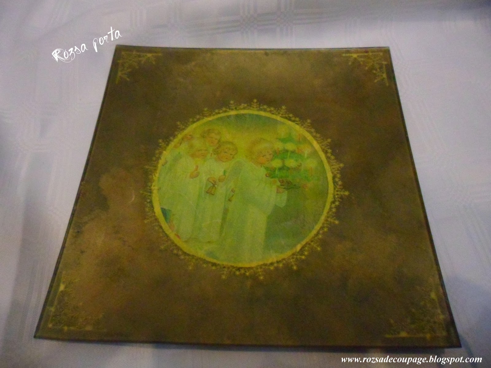 Egyébként annyira megtetszett a dolog, hogy amint ez a hajlított üvegtál elkészült, máris következett a folytatás, készült egy tálca és egy szalvétatartó ezzel a technikával, még lakkozásra vár, legközelebb hozom mutatóba őket is.