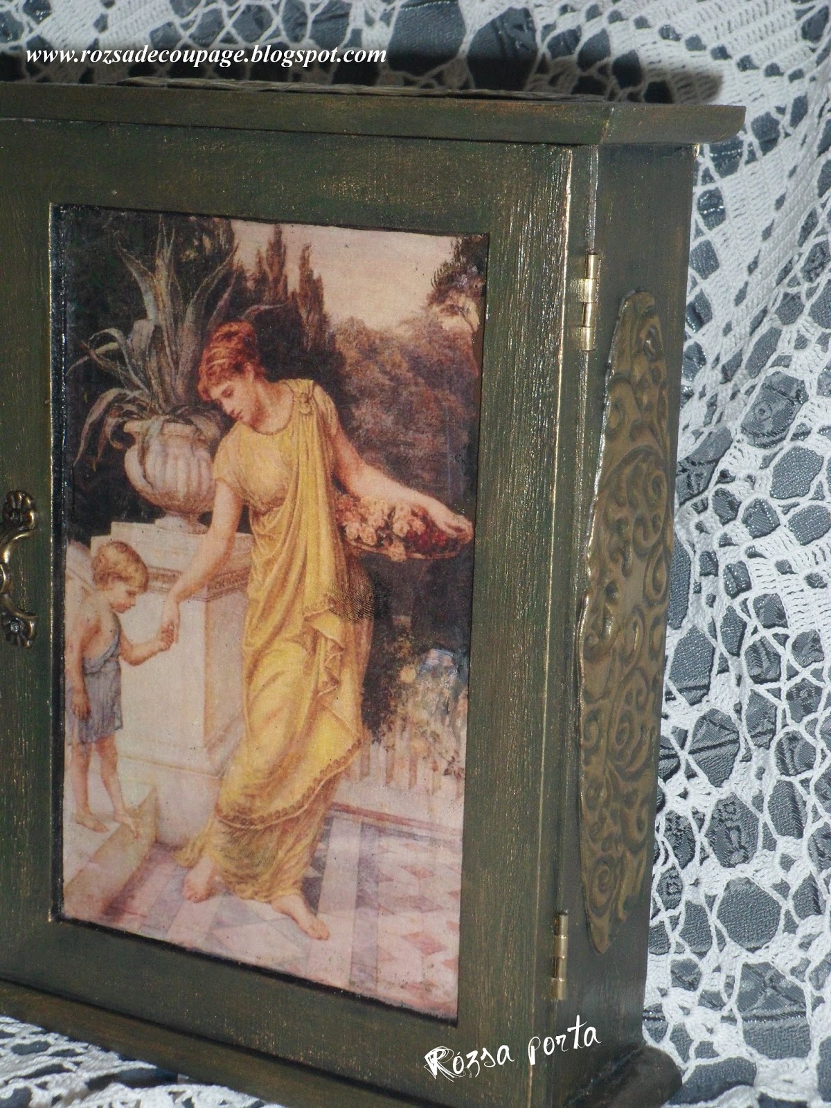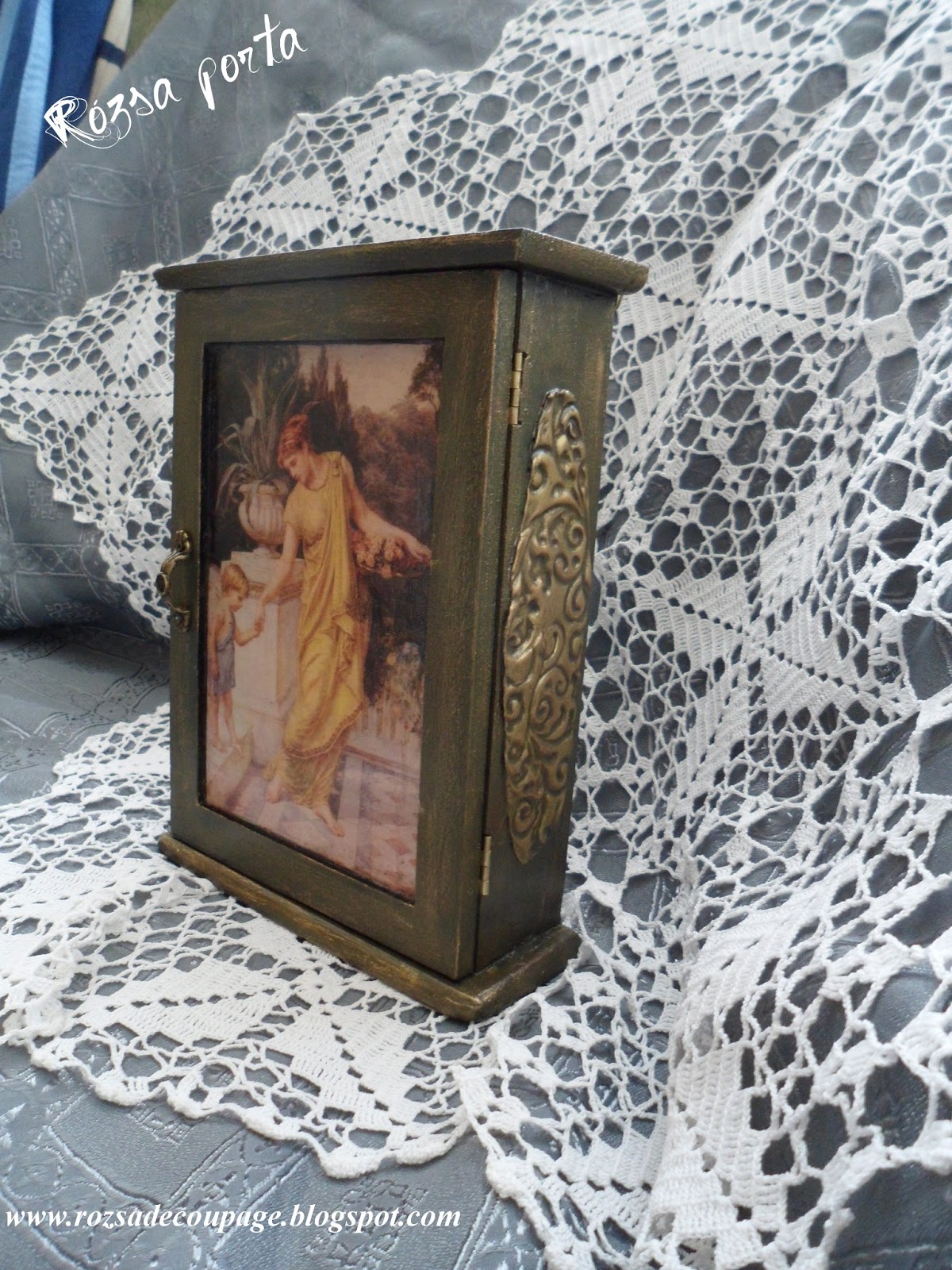 "színvilágom-stílusom" darab, s ettől nálam méltó arra, hogy ezen a napon tegyem fel a blogra. Egy kulcsos-szekrény - ódon hangulatban... Az oldalán és tetején használt dombormintát