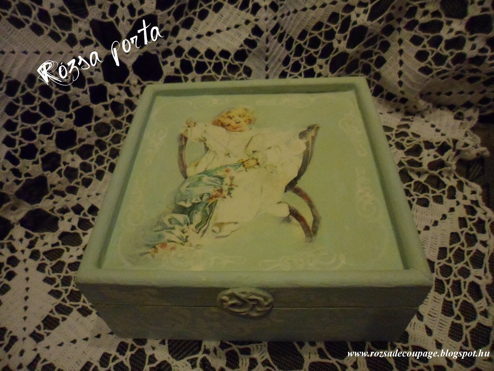 ...angyali - varrós dobozra dekupázsolva...