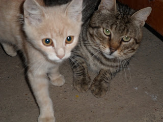 Történt úgy kb. négy hete, hogy a kandúrunk megjelent egy nagyon sovány, nagyon "ramaty" állapotú kiscicával. Este volt. Félreült, beszédes szemével közölte velünk, hogy mit szeretne: vacsorát a kicsinek. Meglepődtem, persze, hogy meglepődtem, "tökön-babon" hazahoz a kanmacska egy cica-kölyköt, akinek a bordái is kilátszanak, oly sovány, a szőre tele van "gazgalacsinnal", s tudatja velem, hogy etessem meg.